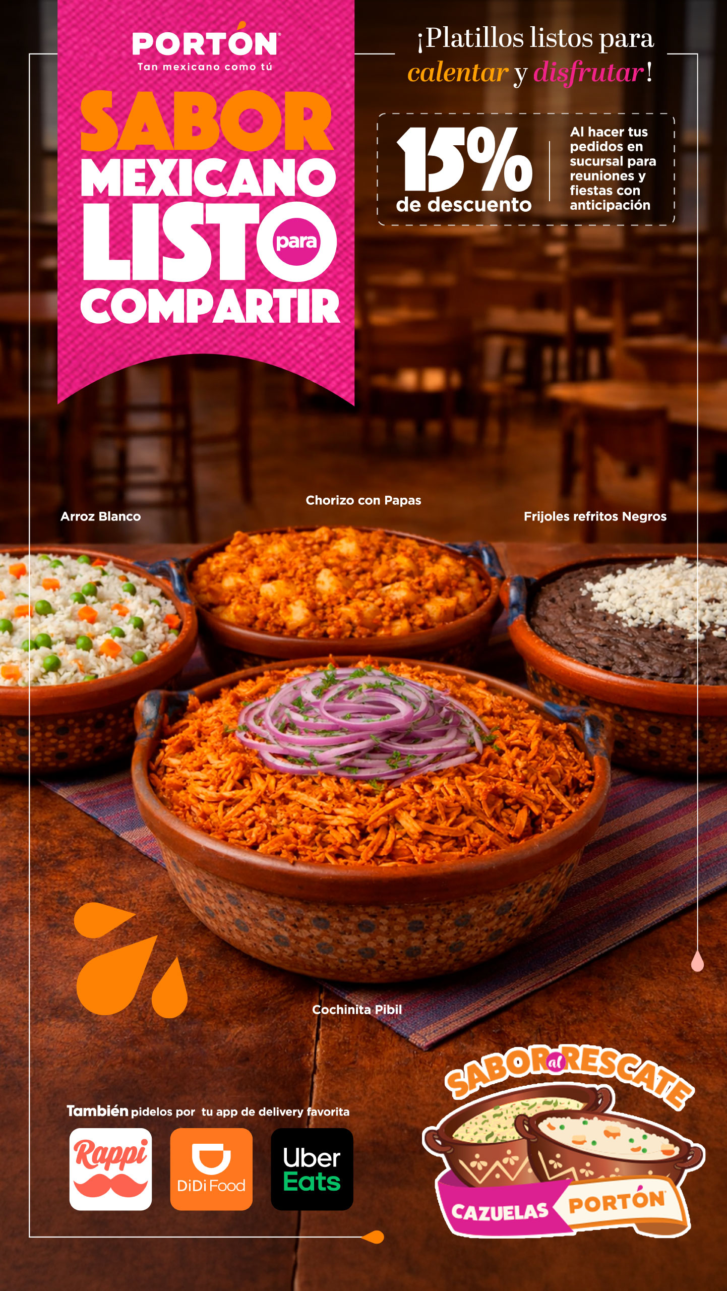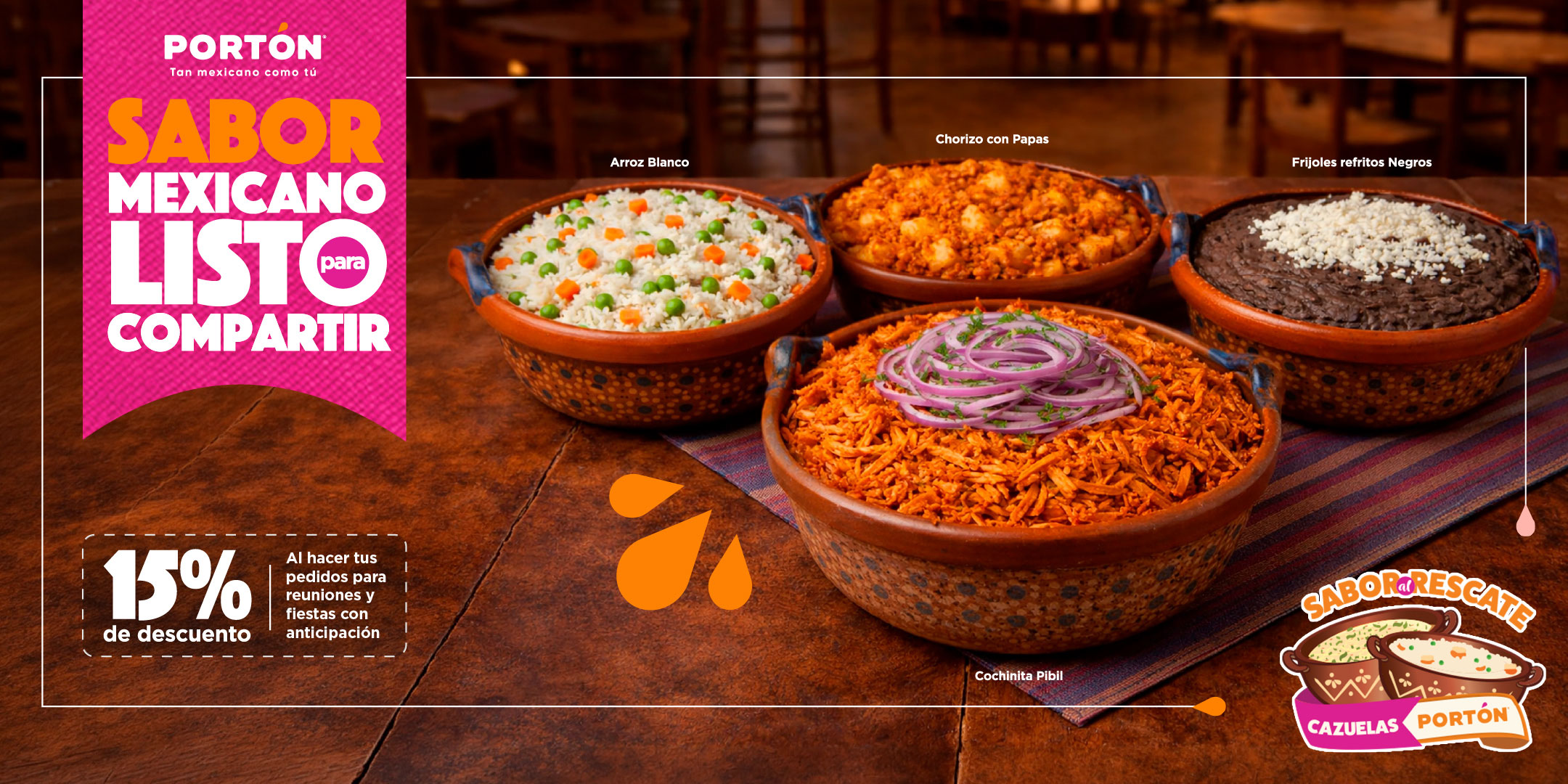 En Portón®, valoramos la importancia de conservar la herencia culinaria que México tiene, ser auténticos es la clave de nuestra cocina, respetamos cada receta, tomamos lo mejor del chile, maíz y frijol para presentarte nuestro viaje por la gastronomía de este gran país.